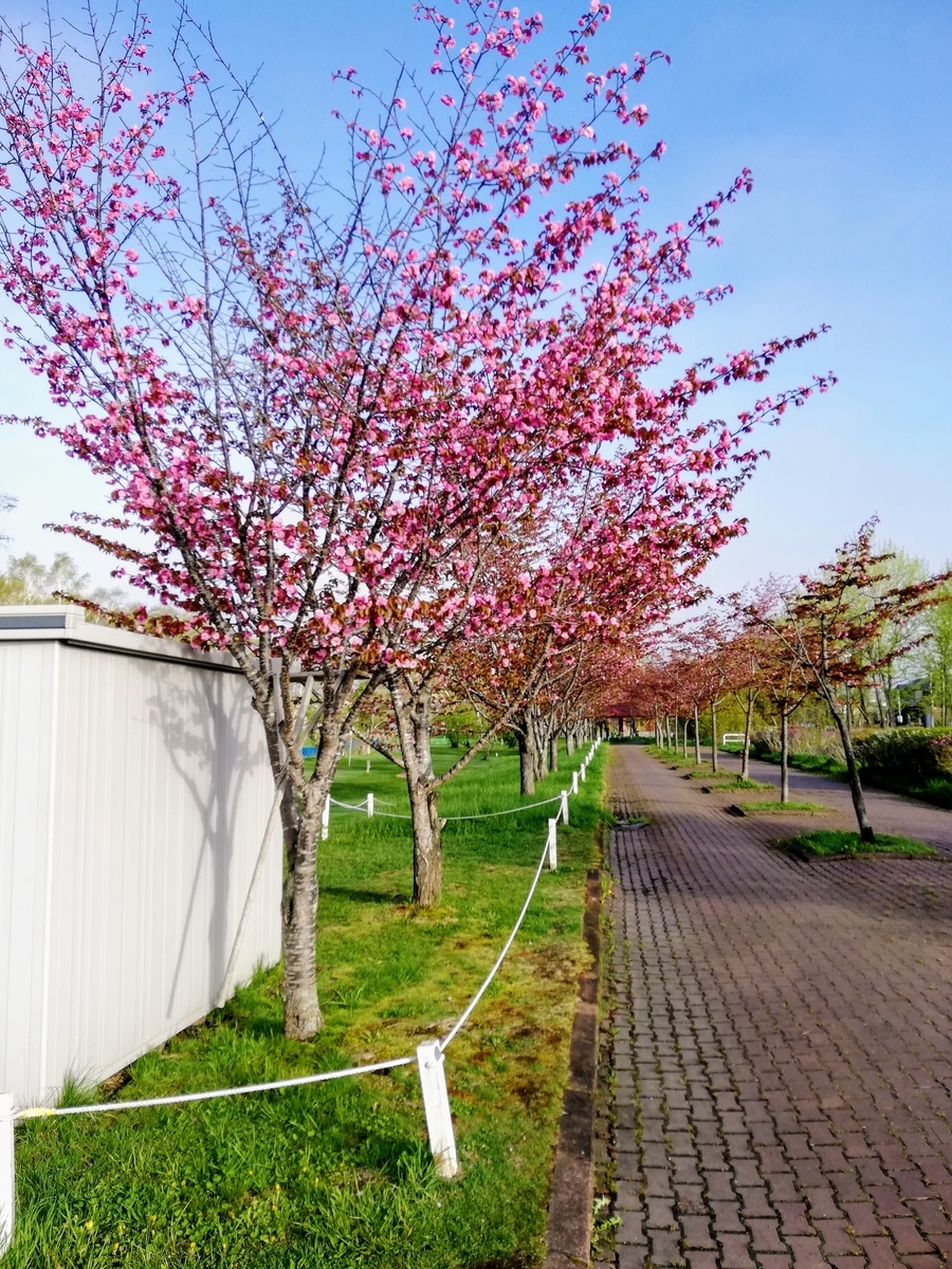 桜の主役はエゾヤマザクラから八重桜へと変わっています。